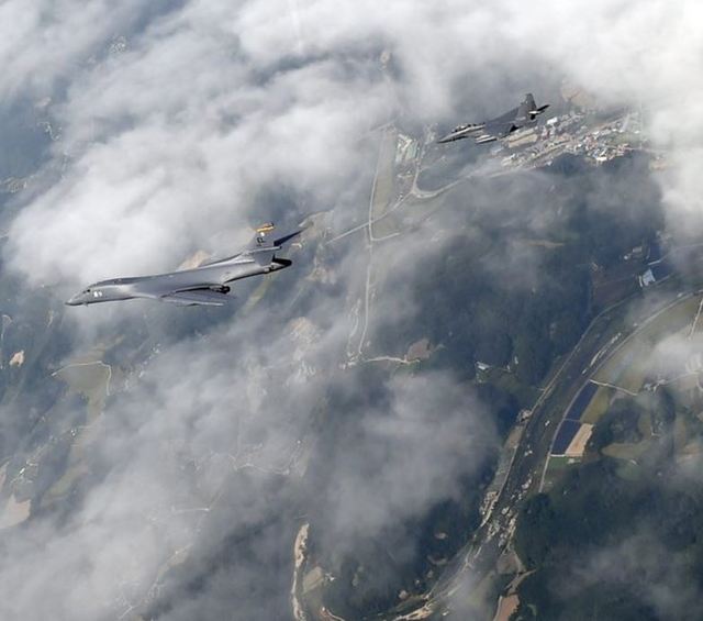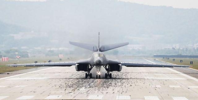 據《韓聯社》指稱,美國正考慮出動B-52、B-2到南韓,加強對北韓的軍事壓力,而南韓時間今天下午1時10分許(台灣時間中午12時10分),2架美軍B-1B就從關島安德森空軍基地出發,進入南韓烏山空軍基地後並低空飛行。其中1架飛越烏山基地後,即轉道飛回關島,另一架則在烏山基地著陸。