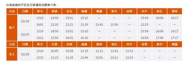 高鐵指出,2月24日、25日,將加開4班次;2月28日加開2班次,且加開班次將依旅運需求提供3至5節自由座車廂,另外,若民眾從南港站上、下車,自即日起至2月28日止,還有機會可以抽中「高鐵標準車廂對號座免費乘車兌換券」。(圖/高鐵網站.資料照)延伸閱讀