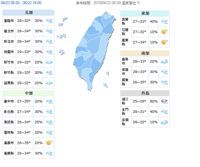 - 今白天多雲到晴 午後防短暫雷陣雨2019/06/30