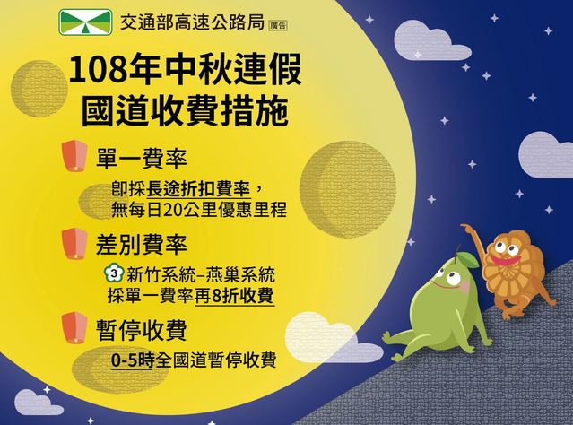 中秋連假國道費率:
