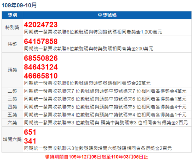 - 千萬獎落誰家!9.10月統一發票中獎號碼出爐2020/11/25