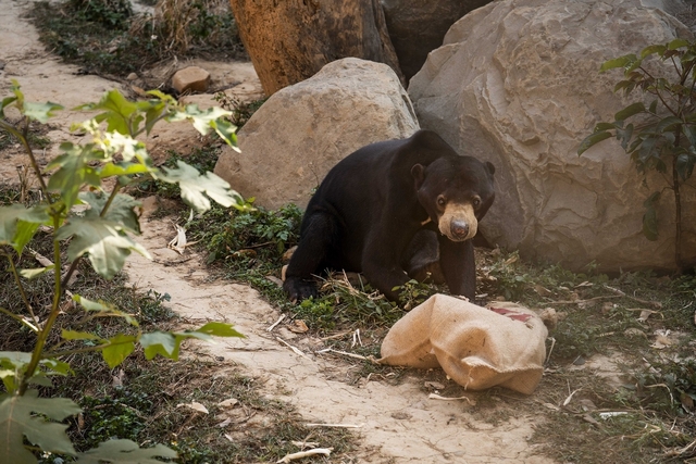 新竹動物園除夕吃大餐 馬來熊拆福袋、浣熊難得開葷