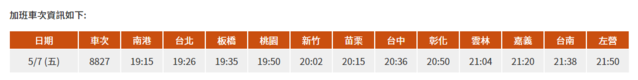週末即將迎來母親節!台灣高鐵宣布,今(7)日晚間將自南港站加開1班次南下各站停靠之「全車自由座列車」,提醒有需要旅客注意。