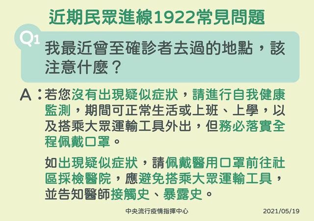 滾一編也呼籲,最近不斷出現疫情相關的消息,各地方政府也不斷公布確診足跡,大家難免看了驚慌,但也不用過度緊張,若是曾到過相同足跡,不需要一直打電話到1922疫情專線,指揮中心強調,只要沒有出現疑似症狀,期間可以正常生活、上班,也能搭乘大眾運輸,但務必落實全程佩戴口罩,而若是出現疑似症狀,務必戴好口罩前往社區採檢醫院,避免搭乘大眾運輸工具,並確實告知醫師自己曾與確診足跡重疊、接觸史等。