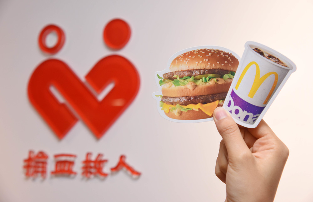 另一方面,麥當勞與「台灣血液基金會」旗下台北、新竹、台中、台南與高雄五大捐血中心合作,於10月1日起至3日止,凡至全台指定62處捐血站完成捐血250cc,即可獲得「大麥克」與「小杯可樂」商品兌換券乙份,民眾做公益還可以免費吃麥當勞。