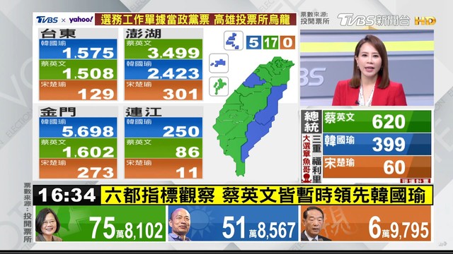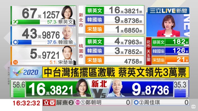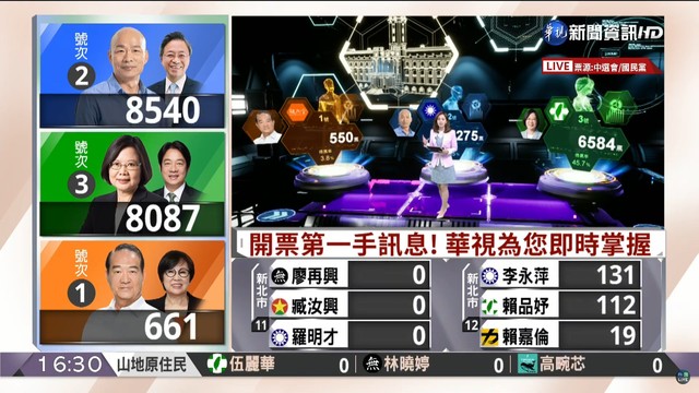 16:30》如火如荼開票中!各台最新票數看這裡