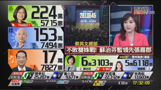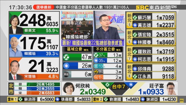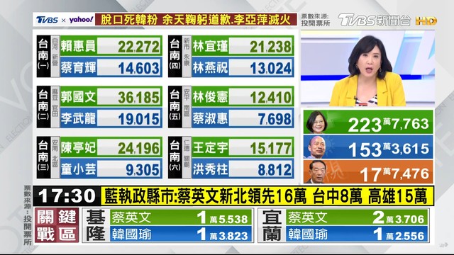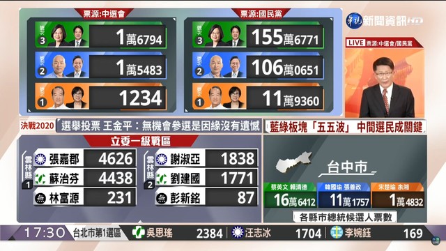 17:30》如火如荼開票中!各台最新票數看這裡