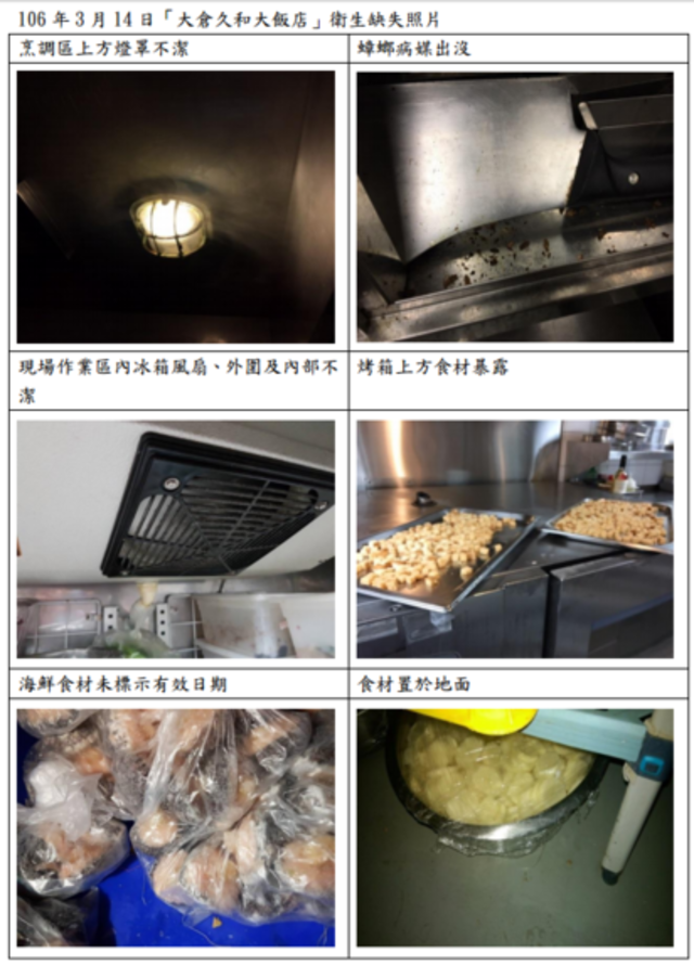 由日本集團經營的台北大倉久和飯店,遭離職員工踢爆使用過期蝦、發霉芋頭等問題食材,今(14日)北市衛生局前往稽查後,發現衛生缺失高達6項,並限期於3月16日(四)前改善完成,否則將處新臺幣6萬元以上2億元以下罰鍰。晚上大倉久和在官網發布聲明稿並公布退費方案,聲稱在驗收時並無察覺過期,並說明去年9月21日至23日和10月12日至15日的消費發票,可以到飯店辦理退款。(資料照,大倉久和臉書)