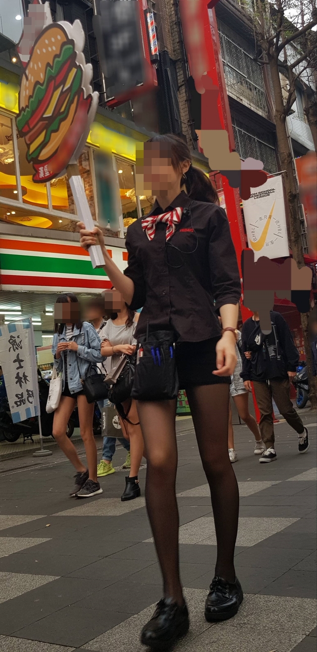 有網友在西門町偷拍一名舉牌妹認真工作的模樣,PO到PTT上和網友分享。照片中的舉牌妹身材修長,穿著超短的短褲大方秀出線條完美的長腿,搭配黑色絲襪,讓網友驚呼連連,但也有網友大力譴責這樣偷拍行為。