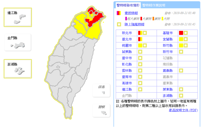 - 米塔進逼! 估20:30發陸警 明最近台灣2019/09/29