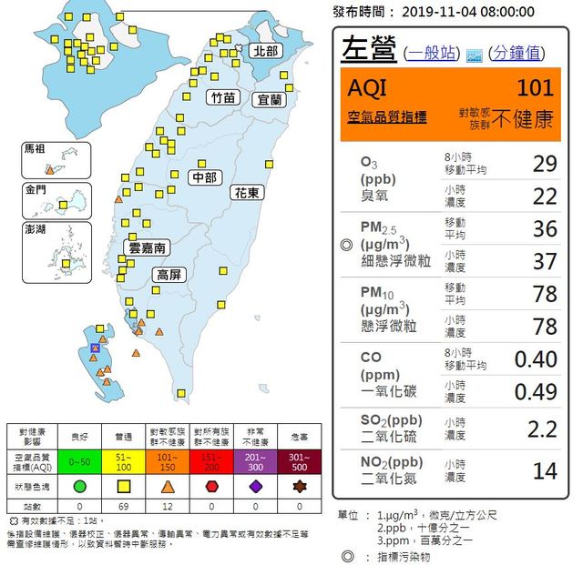 - 日夜溫差10度以上 中部以南空品差2019/11/12