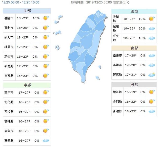 - 北.東北部轉涼! 各地低溫17-19度2019/12/30
