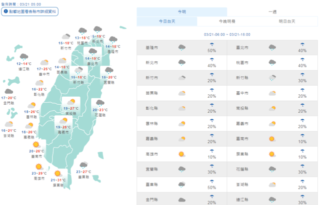 - 強風低溫到週二!這天「中層水氣」抵全台降雨2021/03/22