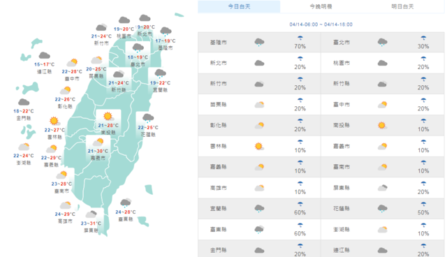- 14縣市陸上強風特報 北台灣濕冷到週六2021/04/09