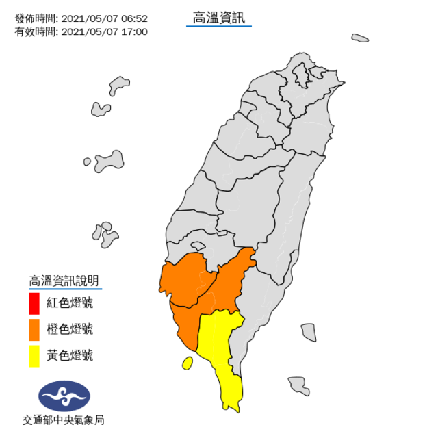 台南高雄高溫澄燈、屏東亮黃燈
