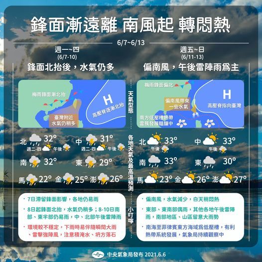 - 各地防午後雷雨 週五後高溫回歸2021/06/09