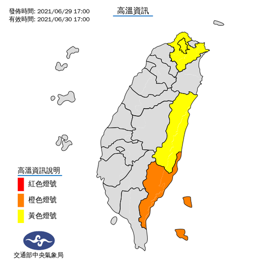 【高溫橙燈】連續3日36度以上:台東縣。