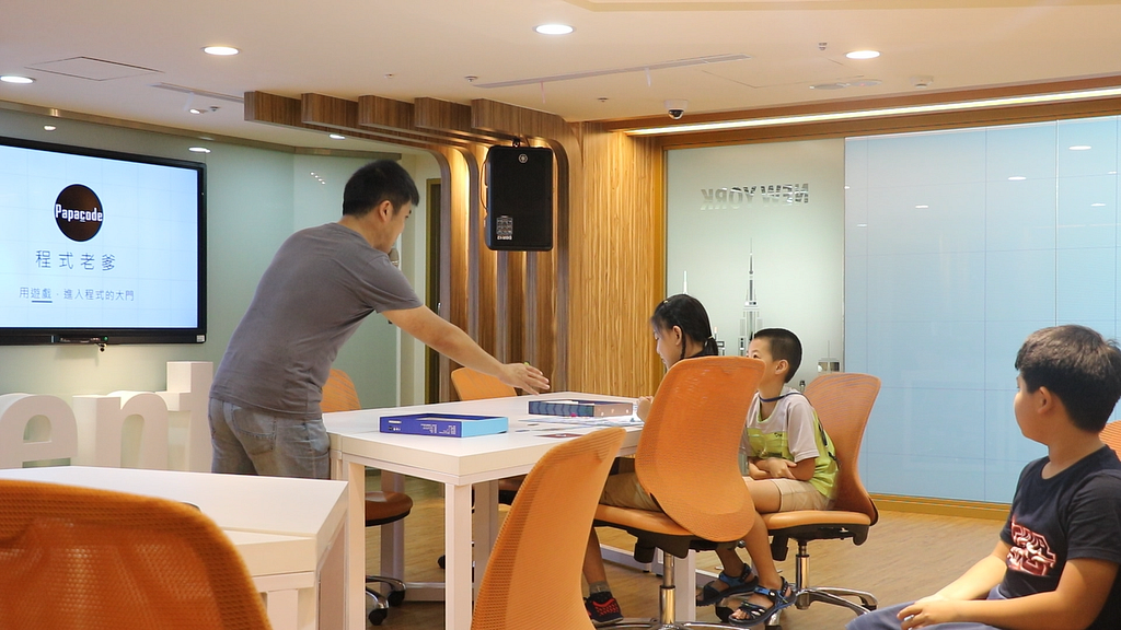 程式老爹-Papacode在兩年前由七位交大學生組成,開發程式桌遊 — — 海霸,結合他們舉辦的營隊帶動小朋友一邊玩桌遊,一邊「無痛學程式」。Papacode負責人徐煊博說:「我們希望讓最一開始的孩子他們是用玩,而不是用學習工具的角度來去接觸程式這一塊。」在Papacode成立時,教育已經頒布將程式設計納入課綱的政策,但成員卻發現,許多中小學校老師在程式教學上仍停留在嘗試階段。因為大多數老師在學生時代,甚至從業以來,都沒有受過正規程式教育,形成照本宣科的教學模式。因此海霸的目標,就是成為一套容易上手的程式設計教材,減少老師們的負擔。